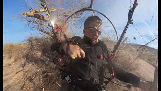 Experienced acro pilot died while performing low-altitude aerobatic maneuver (joker) at Salton Sea. Pilot unloaded glider too much during trick, experienced collapse, caught lines in propeller, spiraled to ground. Despite expert acro skills, altitude was too low for recovery.